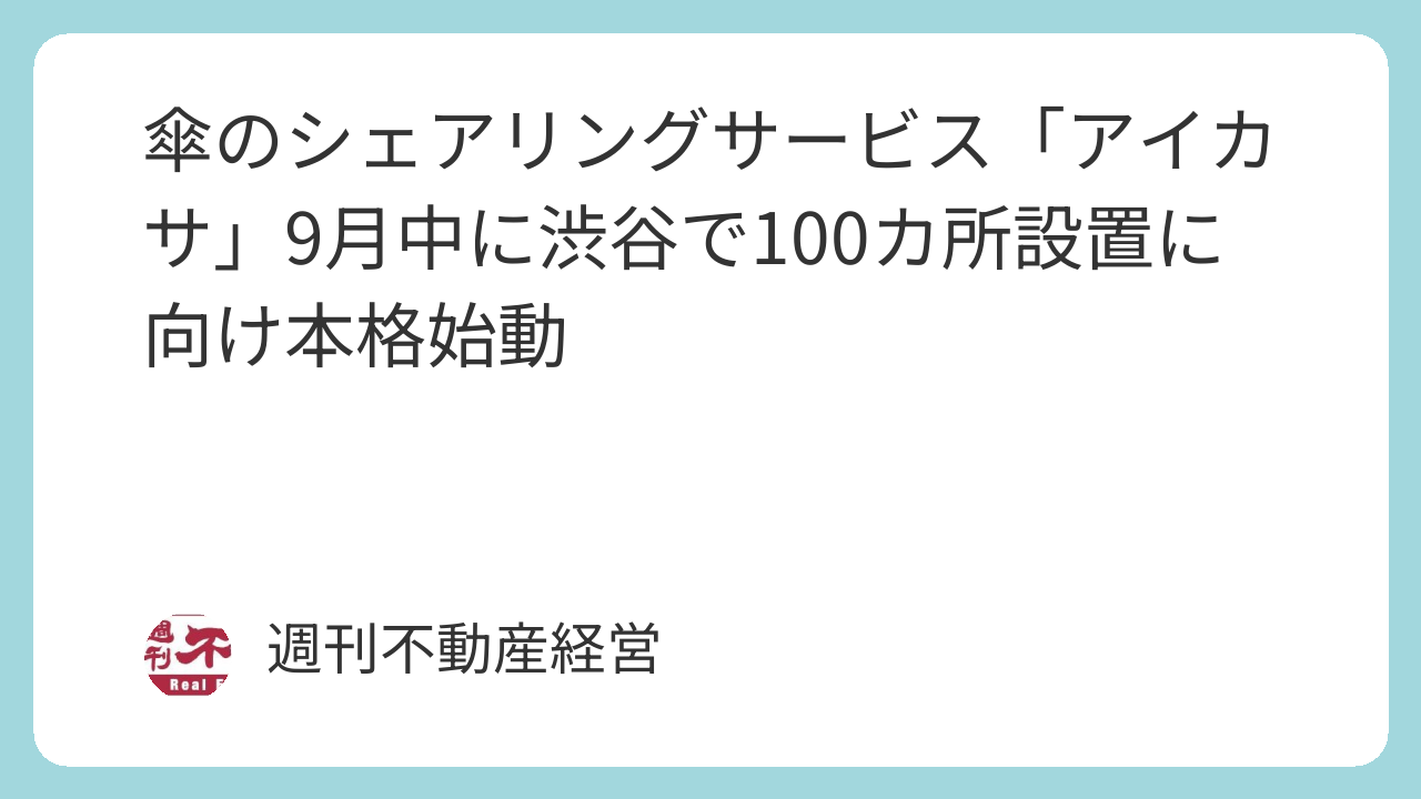 傘のシェアリングサービス「アイカサ」を提供するNature Innovation Group(東京都渋谷区)は、今年6月に東急不動産ホールディングス(東京都渋谷区、以下東急不動産HD)との協業を開始。9月中に渋谷エリアに「アイカサ」スポット100カ所の設置を進めた。