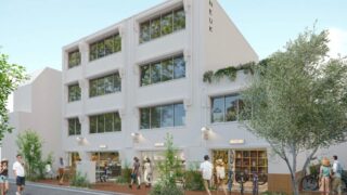 「駒沢大学」駅西口には、全国初の耐火・構造技術を導入した4階建て木造ビル「(仮称)駒沢大学駅西口ビル(2)」と、隣に「(仮称)駒沢大学駅西口ビル(1)」が所在する。
