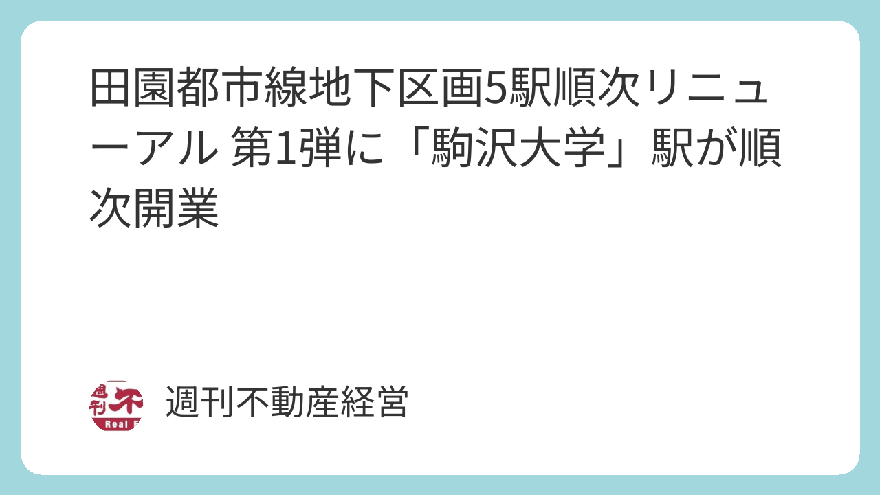 東急(東京都渋谷区)と東急電鉄(東京都渋谷区)は、「池尻大橋」、「三軒茶屋」、「駒沢大学」、「桜新町」、「用賀」各駅で進めているリニューアルプロジェクト「Green UNDER GROUND」の第1弾である「駒沢大学」駅を順次開業する。
