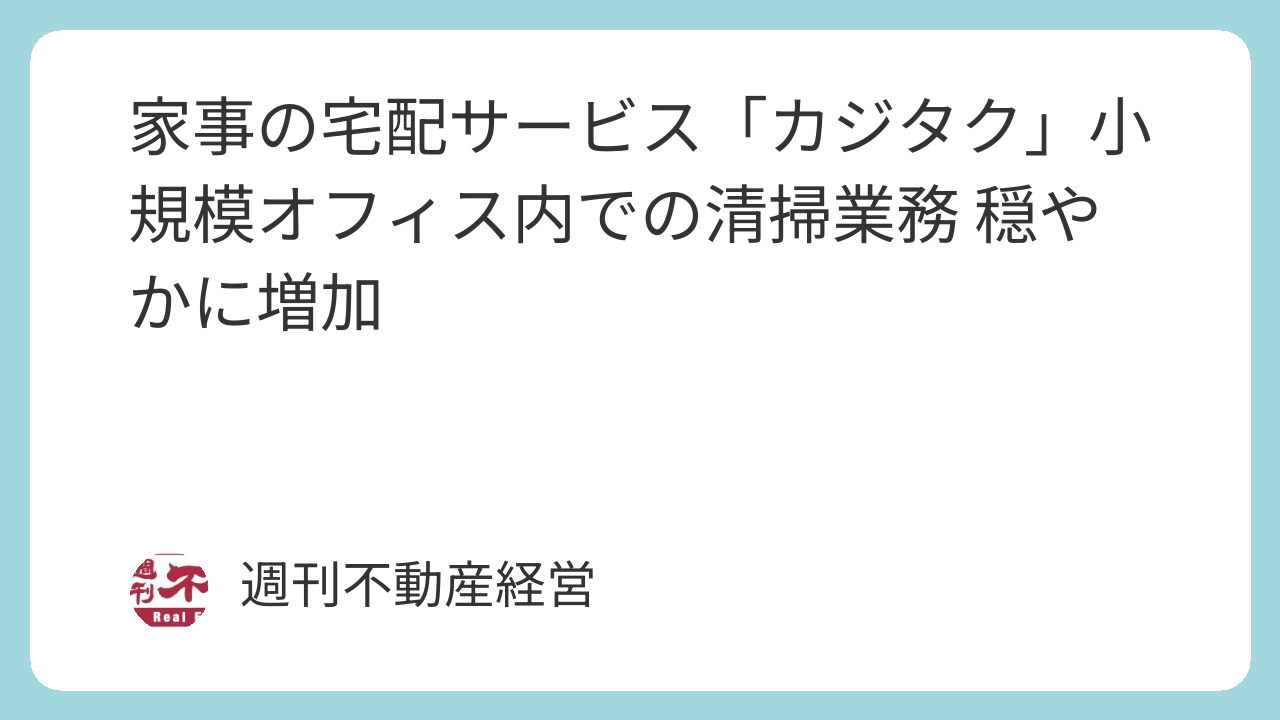 イオングループのアクティア(東京都中央区)は、家事の宅配サービス「カジタク」を展開している。最近は法人からの依頼も増えており、小規模オフィス内での清掃業務が増加傾向にある。