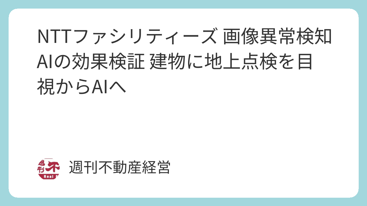 NTTファシリティーズ(東京都港区)は、建物の目視点検を画像異常検知AIで代替するための効果検証を行った。画像異常検知AIによる建物の目視点検の代替は、国内で初の取り組みとなる。