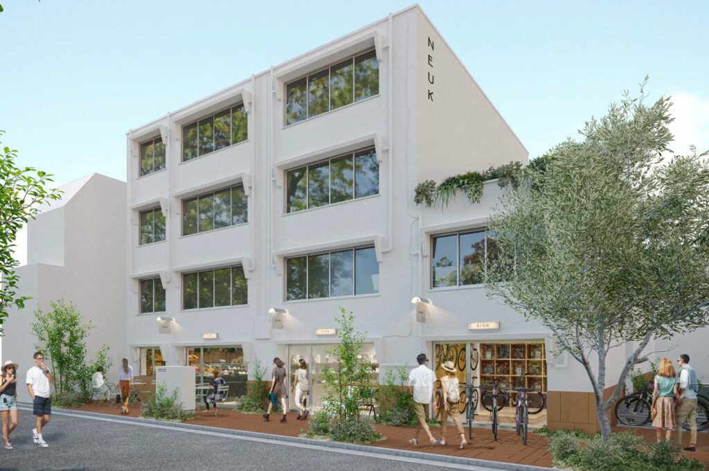 リアルゲイト(東京都渋谷区)は、東京都港区高輪1丁目に立つ築55年のシェアハウスを改装し、カフェ・ショップ・オフィスからなる複合型施設「NEUK shirokanetakanawa(ヌーク白金高輪)」にコンバージョンしている。リノベーション竣工は3月、オープンは4月を予定している。