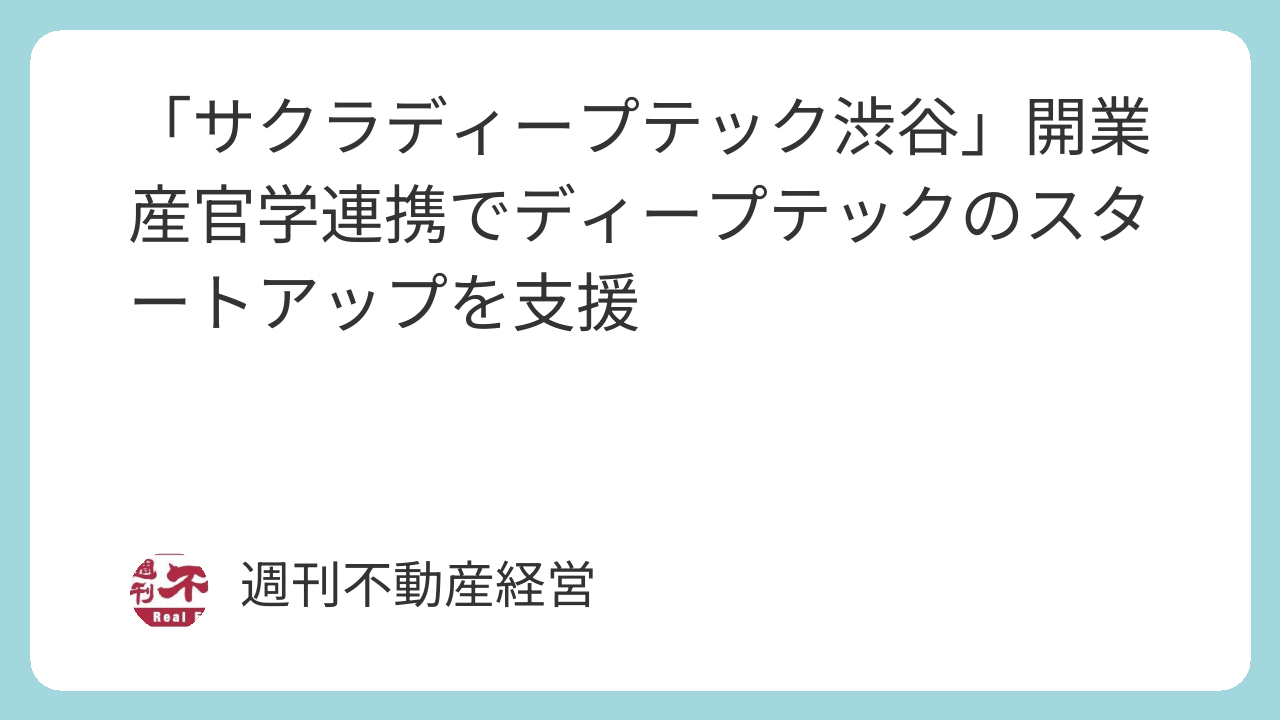 「SAKURA DEEPTECH SHIBUYA」では、スクラムスタジオ(東京都港区)が運営するアクセラレータープログラムを実装。マサチューセッツ工科大学の教授がプログラムの監修を行うほか、大手企業の出資に関する協議を進め、渋谷区や東京都、海外機関等との連携を行うなど、産官学による多角的なスタートアップ支援を図っていく。