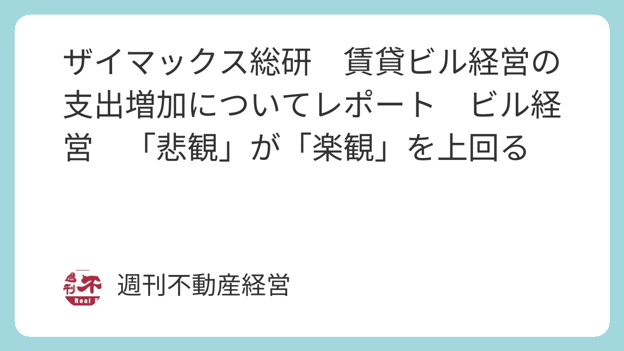 ザイマックス不動産総合研究所(東京都港区)は3日、「賃貸ビル経営における支出増加の現状」と題したレポートを発表した。