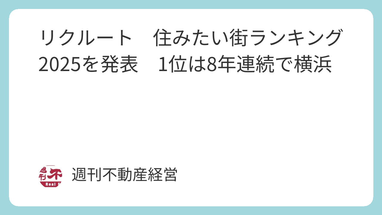 不動産情報サイト「SUUMO」を展開しているリクルート(東京都千代田区)は、今月6日「SUUMO住みたい街ランキング2025」を発表した。