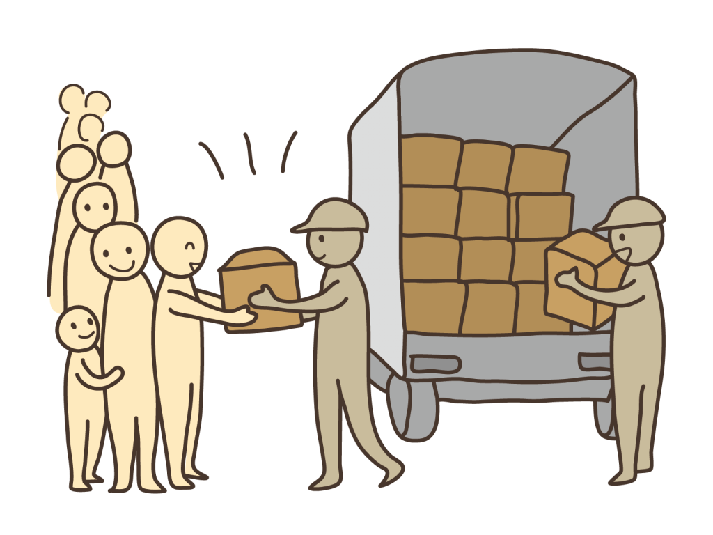 災害時、支援物資は地方公共団体、または委託により自治会・ボランティアが配布を行ってくれます。災害発生当初など、支援物資が十分にない場合は数量制限を設けて公平に配布されることも。支援物資の供給が追いついてくれば、数量制限は解除されます。