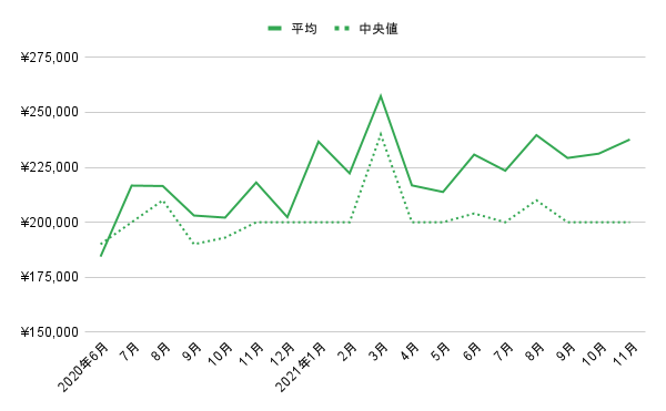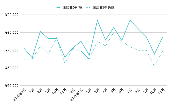 先月はやや低めだった住居費ですが、今月は平均値・中央値とも先々月の水準に戻りました。