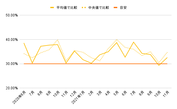 平均値で比較:32.75%(前月比 +3.4ポイント)