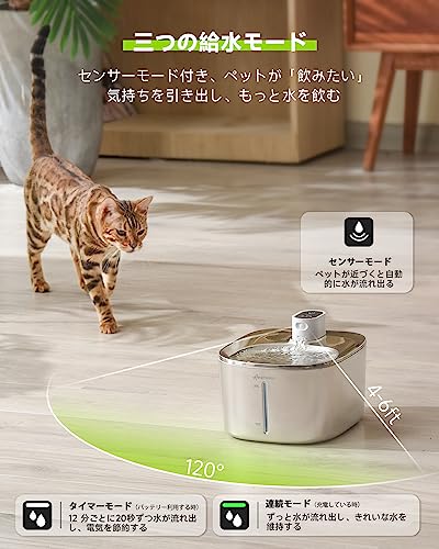 猫にとって新鮮なお水が飲める環境はとっても大切です。飼い主がいない間も水をたっぷり用意しておくことが重要。2〜3 日くらいもつ大容量の自動給水器だと新鮮なお水を十分供給できます。