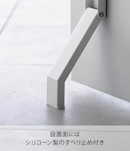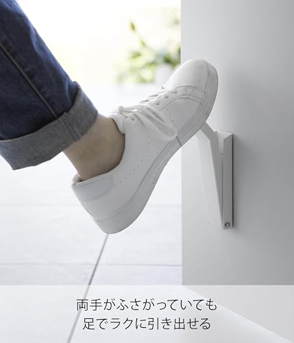 引っ掛かりがあるので足で簡単に上げ下げができるそうです。使わない時は折り畳んでスリムに収納でき、すっきりしたデザインで玄関の邪魔になることもありません。