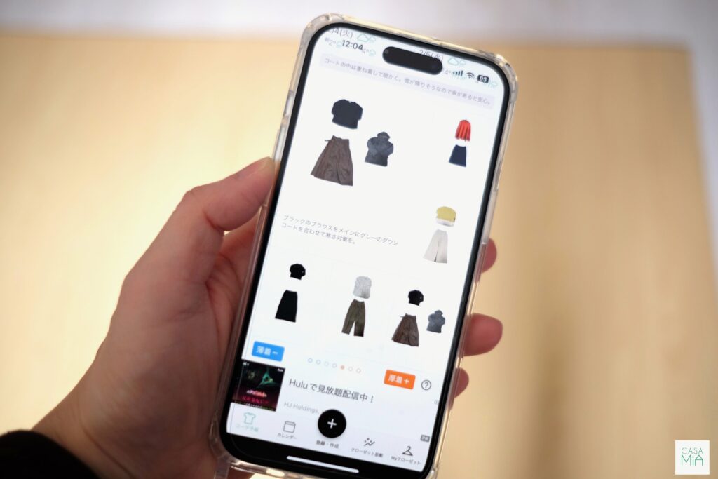 XZは、AIスタイリストがその日の気温や天気に合わせてコーディネートを提案してくれます。1週間のコーディネート例が見られるのも楽しそうだと思い選びました!