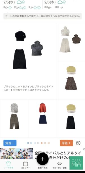ズボラな私には手持ち服の登録が結構面倒くさいかな…と心配していましたが、意外とスムーズに進められました。