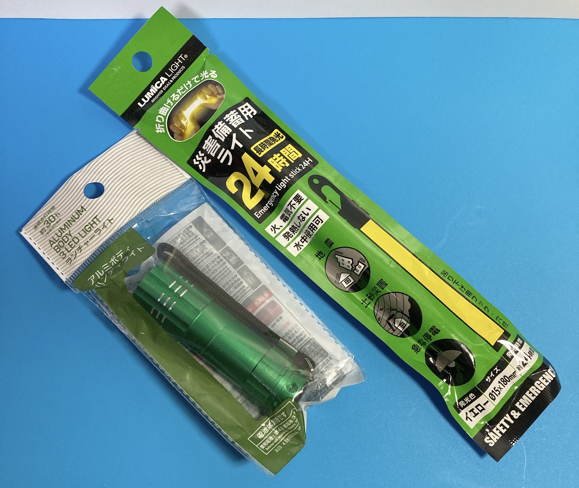 賃貸で一人暮らしをする方の防災グッズとして、「災害備蓄用ライト24時間」と「ランチャーライト」の両方を常備しておくと安心です。