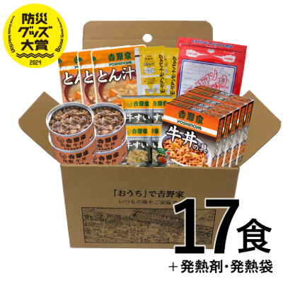 紅しょうがをブレンドした特製唐辛子付きの「常温保存牛丼の具」、具だくさんの「とん汁」、フリーズドライで商品化した「牛すい」、製造後賞味期限3年の「缶飯牛丼」に非常時にも温められる「モーリアンヒートパック」が付いた、公式通販ショップ限定のセットだそうでです。