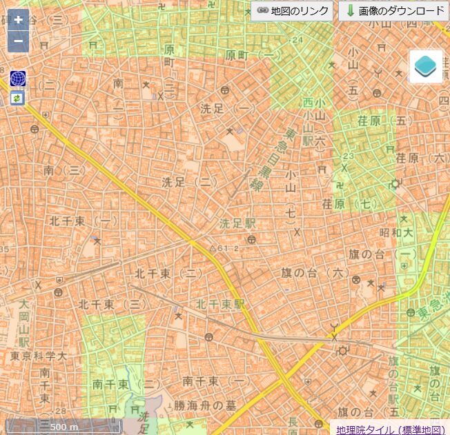 洗足駅周辺の液状化リスク|北千束1丁目の一部はリスクが高め