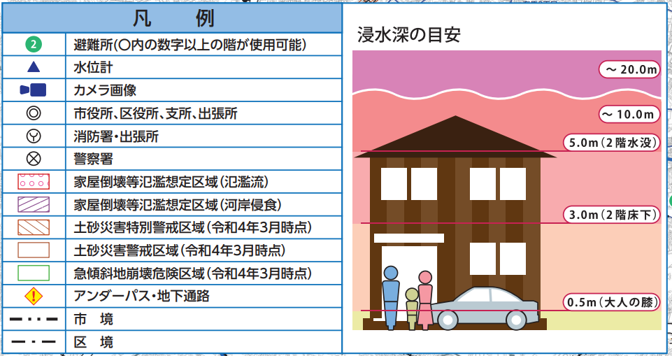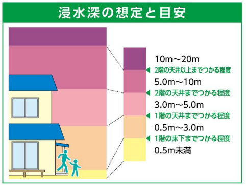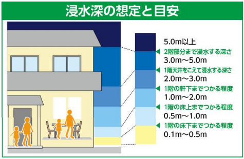さらに、中小河川の氾濫や内水氾濫によって、5.0mを超える深い浸水が想定されているエリアも見られます。水害が予想される場合には、早めの避難行動が重要です。