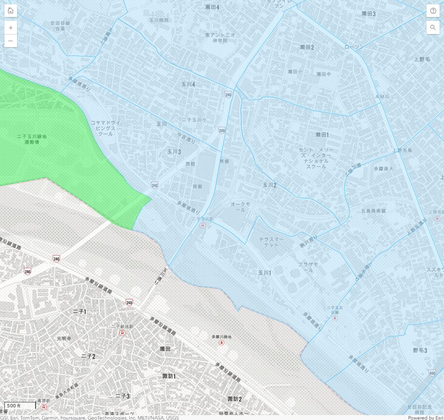 本記事では、それぞれの自治体のハザードマップ計5つを使って、二子玉川駅周辺における浸水リスクを見ていきます。