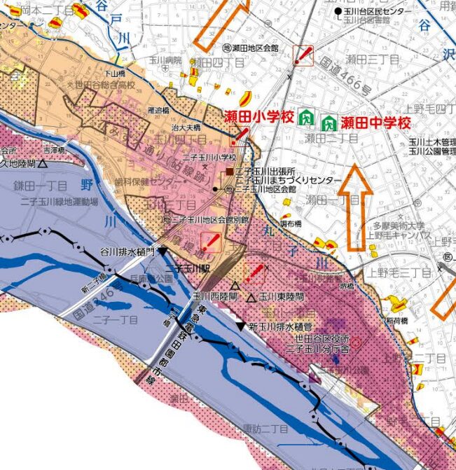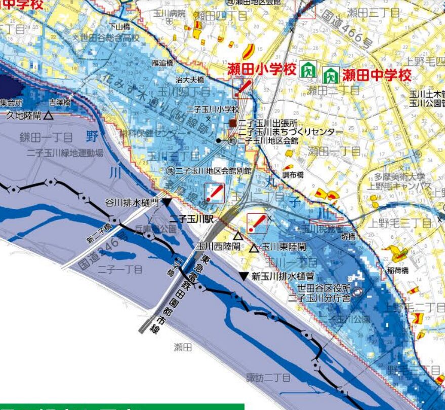 東京都世田谷区の多摩川洪水版ハザードマップ