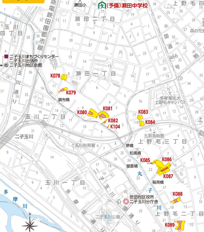 ランク1の地区は、鎌田3丁目と上野毛2・3丁目、玉川1・2・3・4丁目、瀬田1・2・4丁目です。