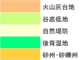 同じく南西エリアに見られる谷底低地は、川の流れで運ばれた土砂で形成されています。やわらかい土や枯れた植物などが堆積しているため、軟弱な地盤です。
