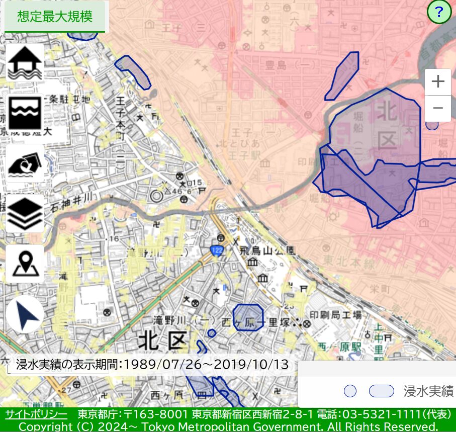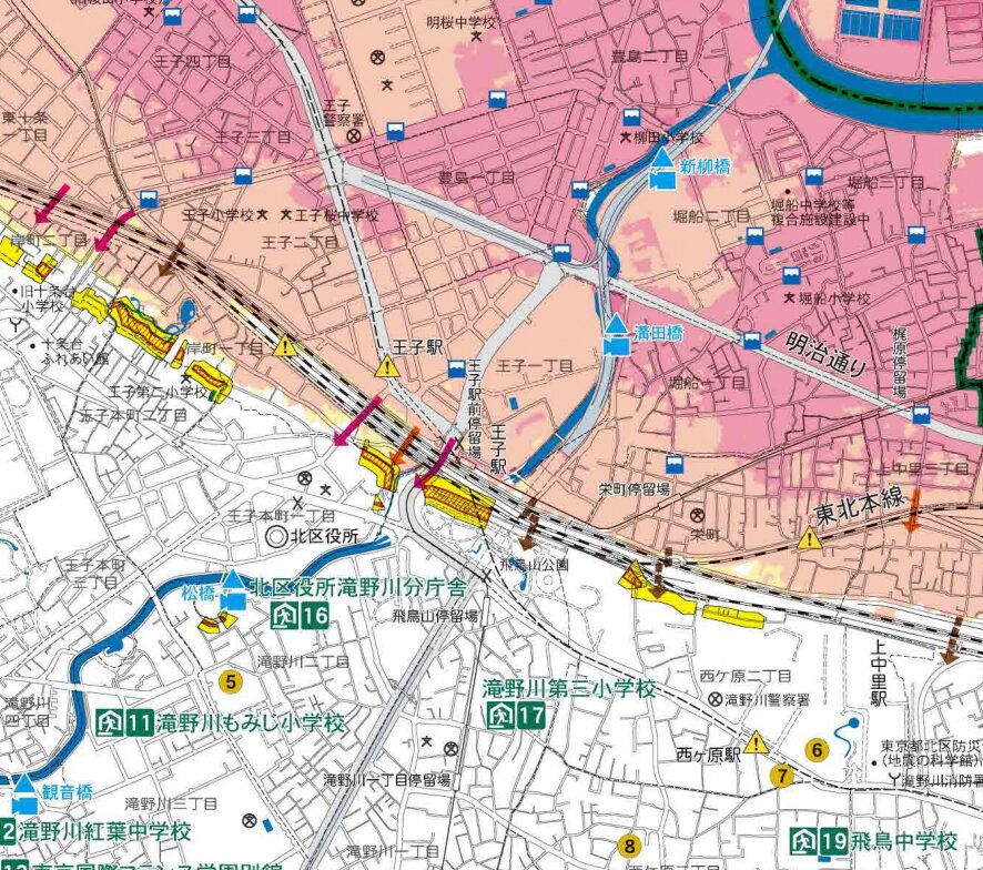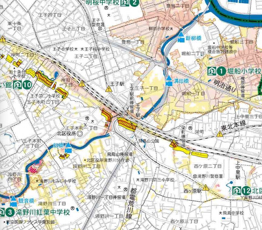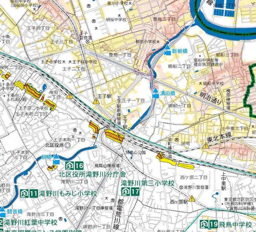 王子駅周辺の浸水リスクは、北区が公開している防災ハザードマップで確認できます。