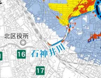 北区の洪水ハザードマップ(石神井川)