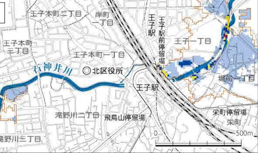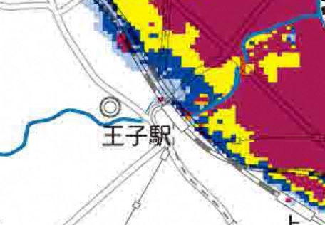 王子駅周辺の洪水リスク|北寄りの地域では最大5.0mの浸水想定