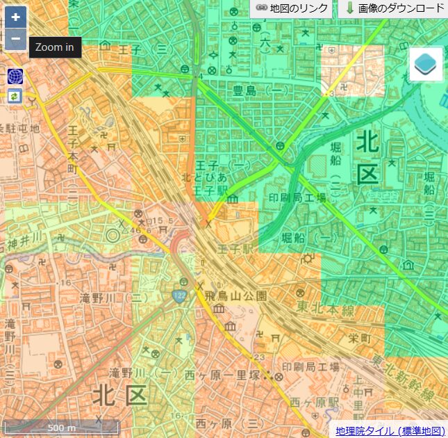 王子駅周辺の地震リスク|王子駅近くの地区は低リスク
