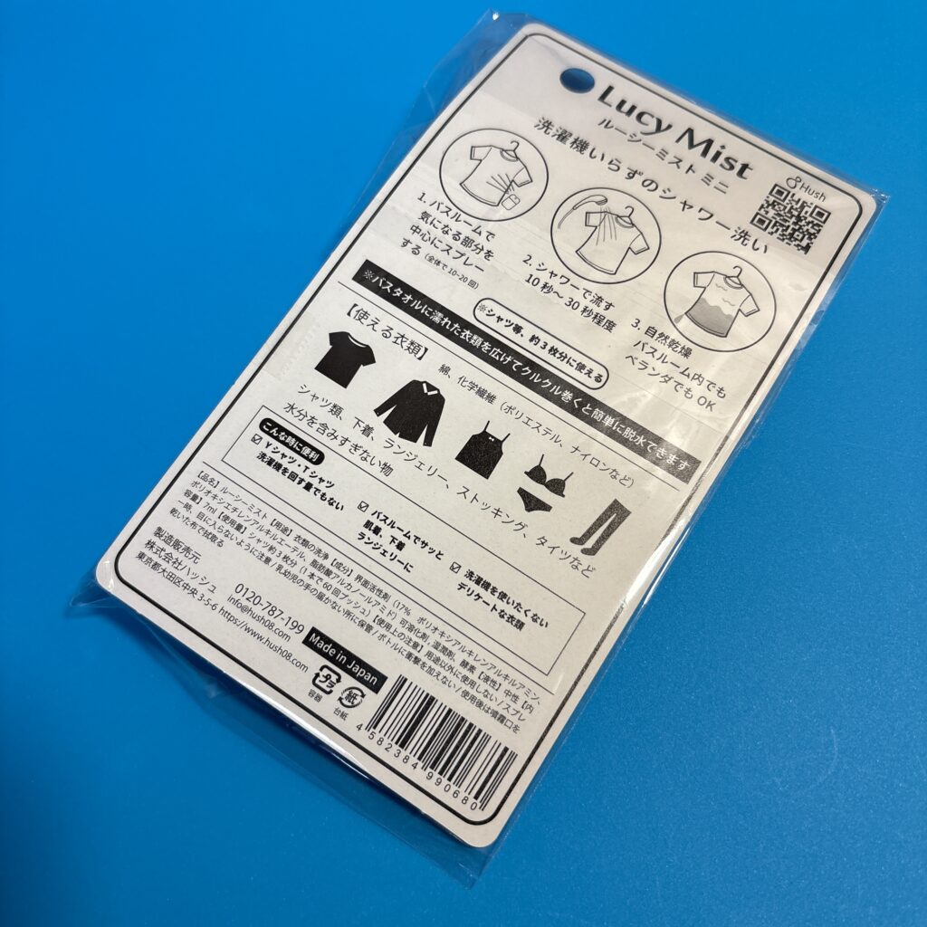 「ルーシーミスト ミニ」は、スプレーしてシャワーで流し、乾燥させるだけで衣類を手軽にリフレッシュできるアイテムです。