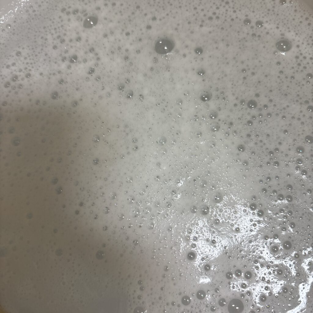 シャワーの水を受け止めるために用意していた桶の中で、水が泡立っていました!
