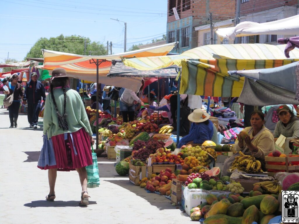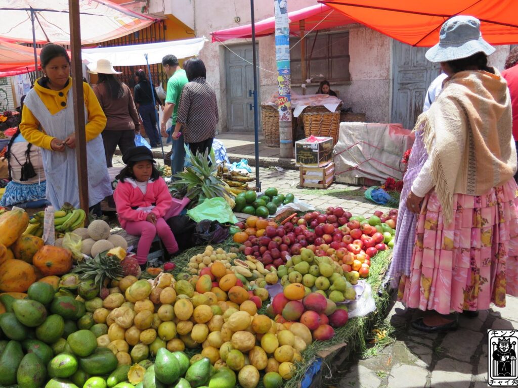 ボリビアの青空市場ではどこでも山盛りのフルーツをお見掛けしました