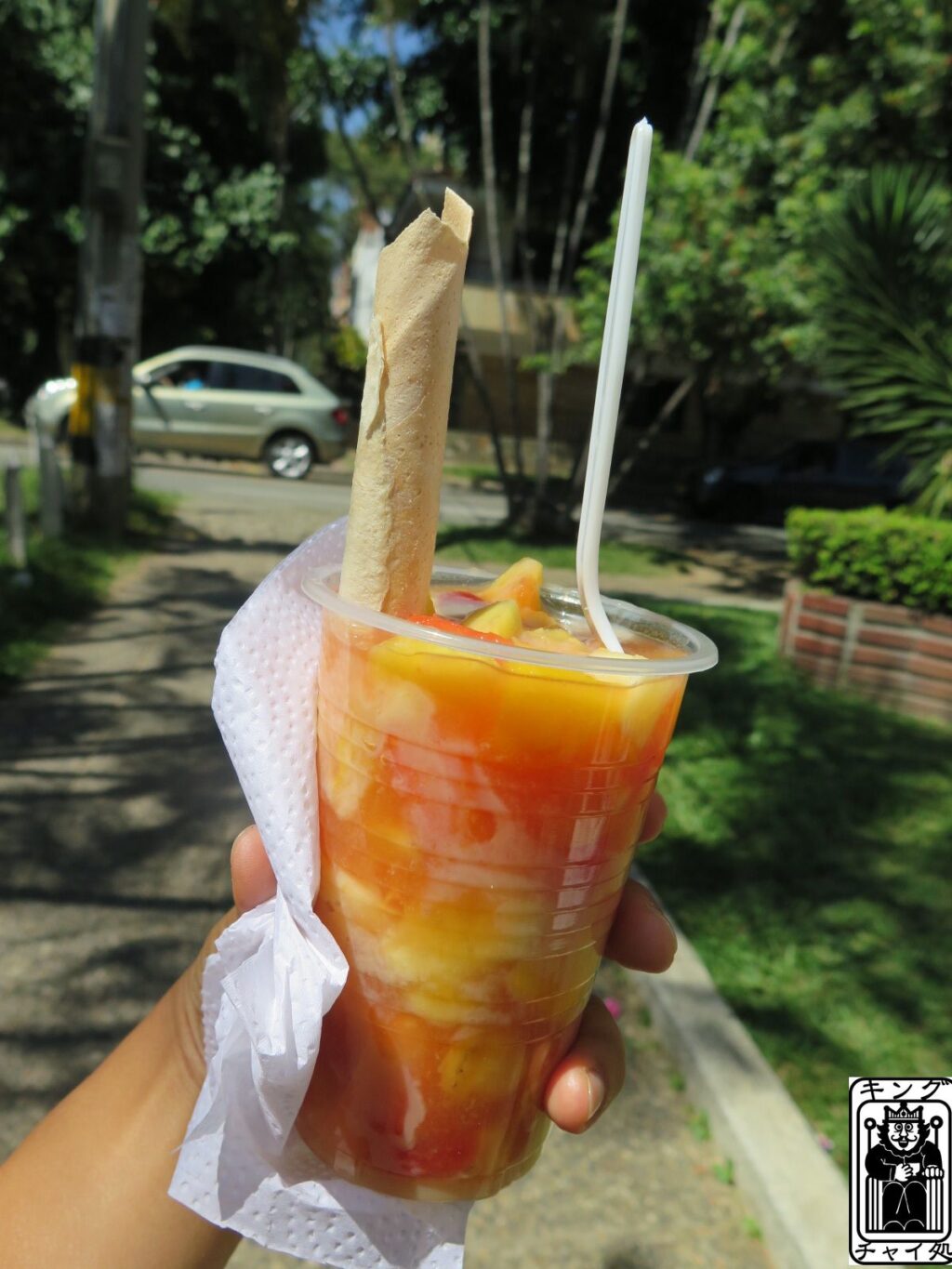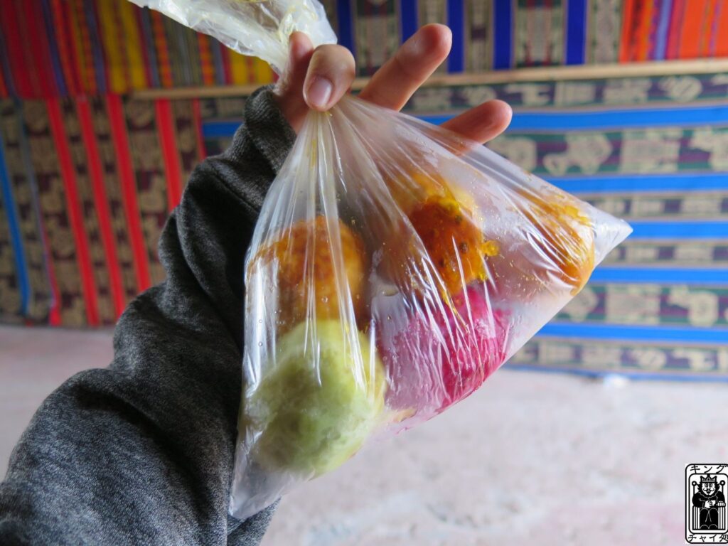 このカットフルーツ数種類スタイルはグアテマラでしか見なかったかも