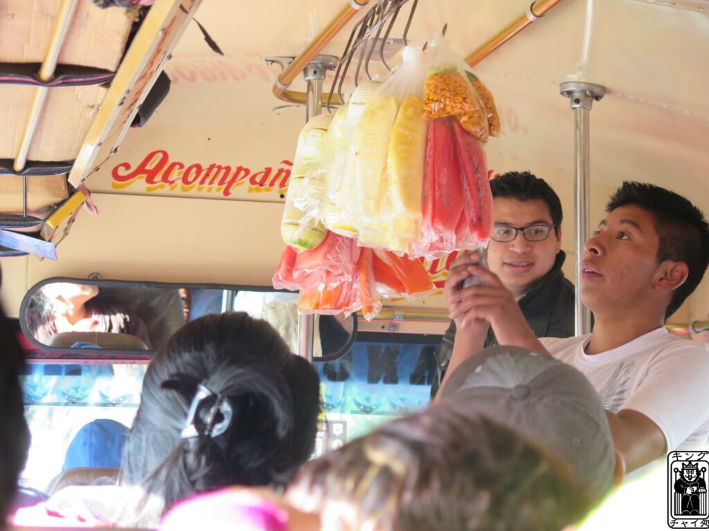 バスの出発待ちの時に乗り込んできて売る移動販売スタイル