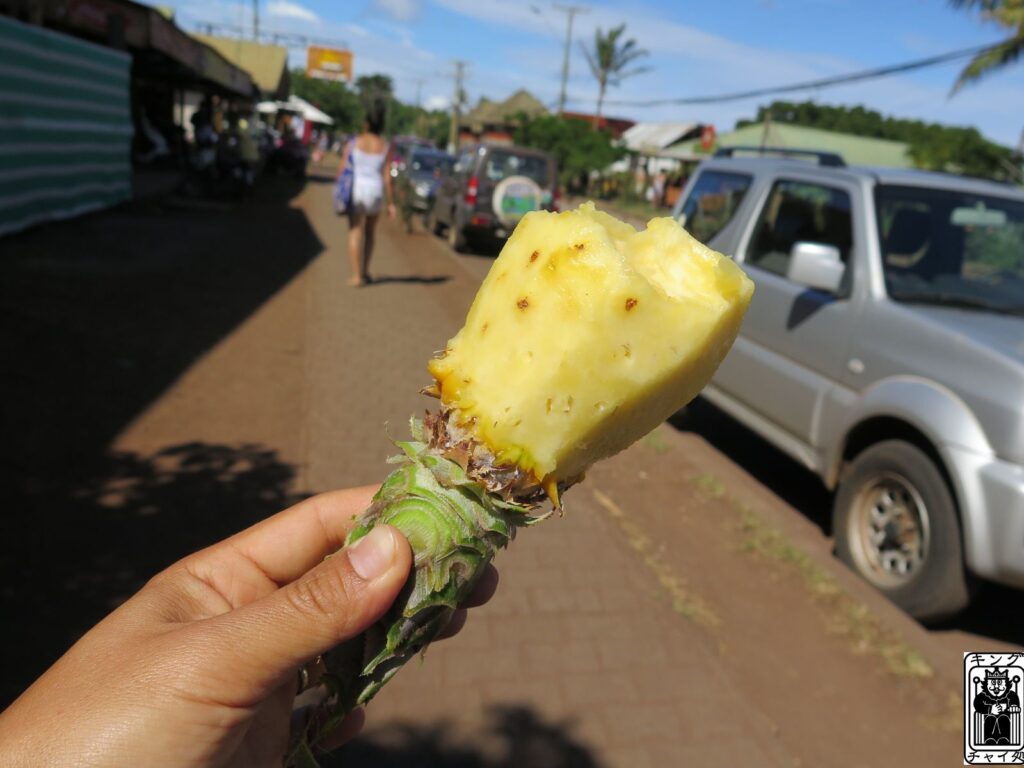 その後チリのイースター島でチビパインを食べ歩き