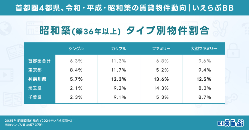 【2.カップルタイプ】神奈川県で昭和築物件12.3%で最多