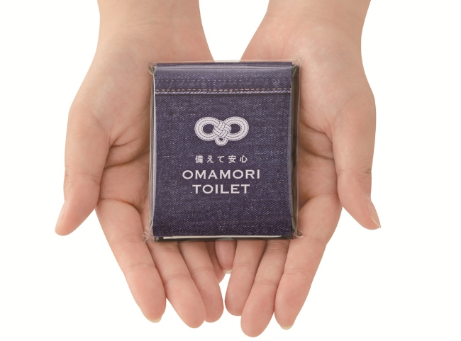 手のひらサイズの持ち歩ける携帯トイレです。 防災トイレに見えないおしゃれなお守りのデザインで、バッグやポーチに入れていつでも安心だということです。 防災用としてはもちろん、ドライブやアウトドア時にも活躍してくれるそうです。