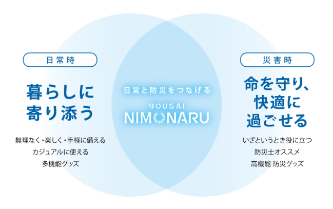 「株式会社メイダイ」の防災ブランド「防災ニモナル」は、「防災グッズ」がいらない未来を目指す上で、日常と防災を繋ぐ商品は、私たちの生活をより安全で安心なものにしてくれると考えているそうです。