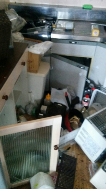 東日本大震災のとき、対策をしていなかったため食器棚の中の食器類が飛び出してお皿やグラスやマグカップが割れてしまい、油も床にこぼれてしまいました。その後、床に落ちた食器類を片付ける際には、割れ物が散乱しているのでケガをしないよう細心の注意が必要でした。