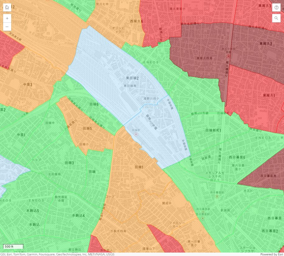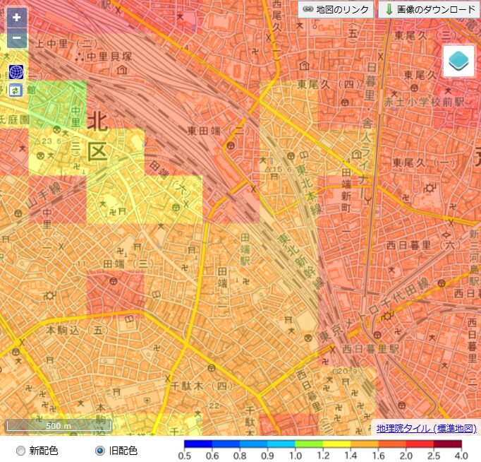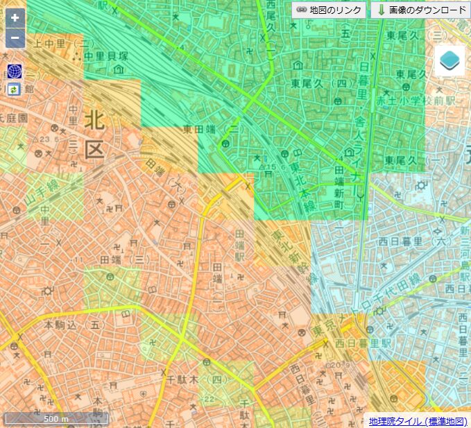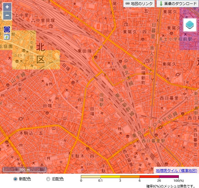 田端駅周辺の地震リスク|東田端2丁目は低リスク