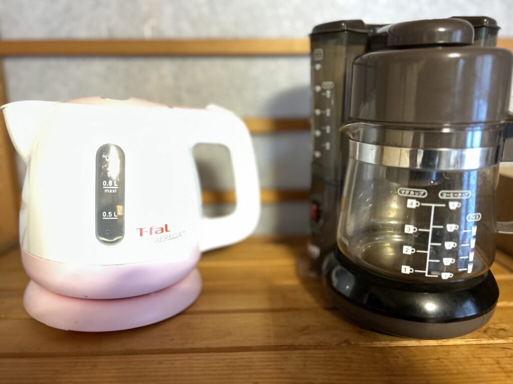 電気ケトルやコーヒーメーカーのような小型な家電にも耐震マットや滑り止めシートを敷いて移動や落下防止の対策をしましょう。