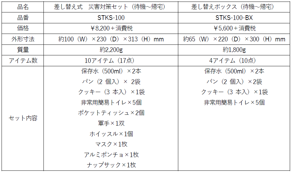 製品名:「差し替え式 災害対策セット(待機~帰宅)」