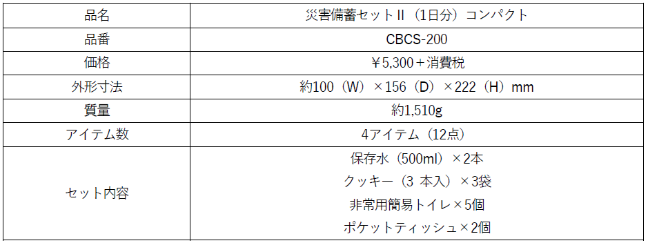 製品名:「災害備蓄セットⅡ(1日分)コンパクト」