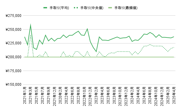 中央値:¥220,000(前月比 +¥2,475)
