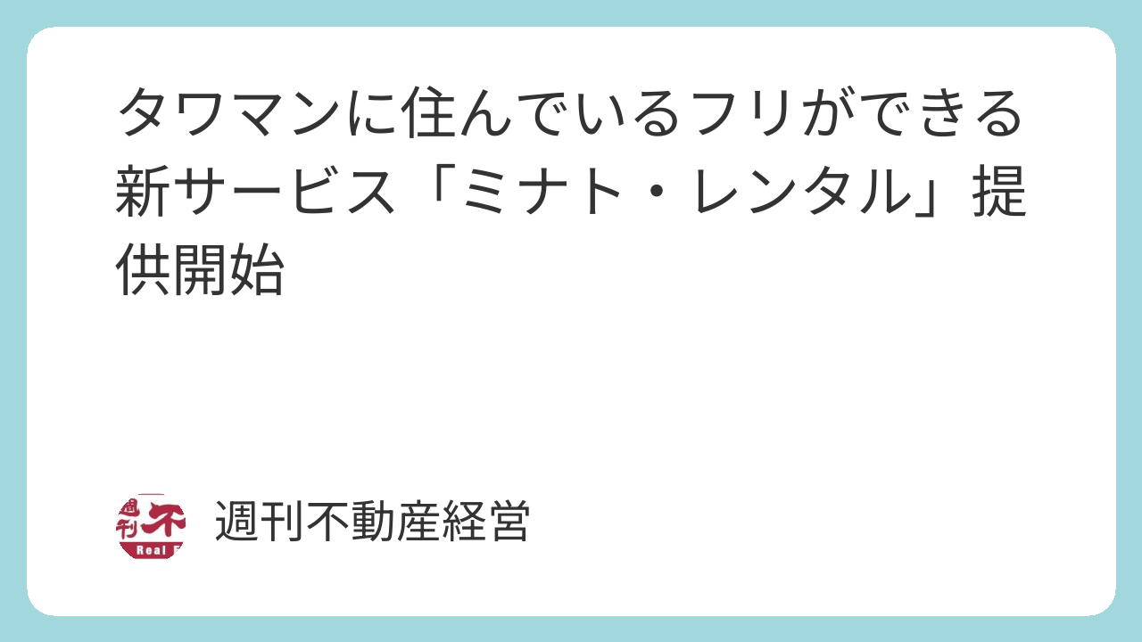 FocusFirstAdvisors(東京都港区)は、タワマンレンタルサービス「MINATO RENTAL(ミナト・レンタル)」の提供を5日から開始した。「住所を伏せたい恋人や友人への『お披露目』用自宅として、1LDKの住居空間を最低18時間から、1時間単位で延長して利用できる」という。