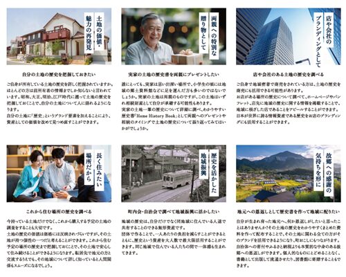 この人的及び物的リソースを最大限に活用し、誰にとってもわかりやすい土地の歴史書の制作サービス「土地物語」を展開しているということです。