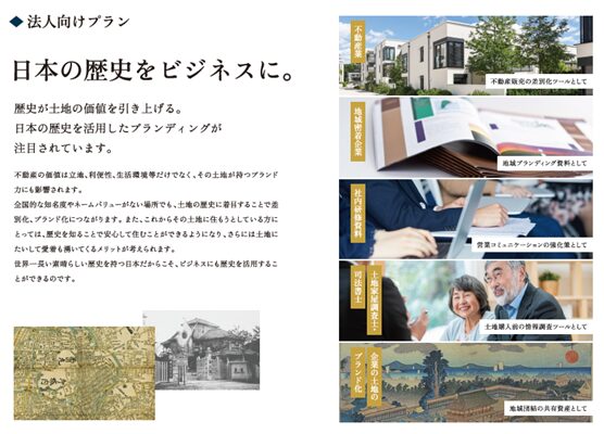 法人向けには、土地の歴史を通して日本の歴史を活用したブランディングの提案をしているということです。地域密着企業、地方銀行、信用金庫、士業、不動産業者、等の企業が対象だそうです。