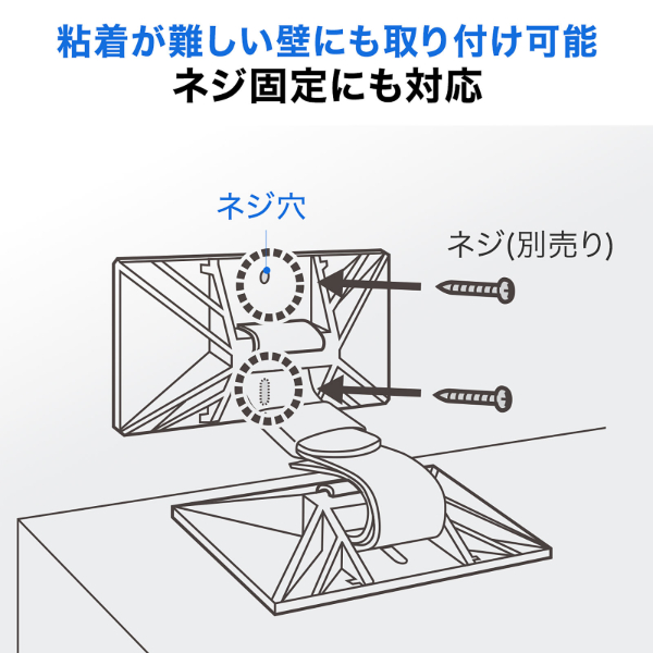 本体にはネジ穴もついており、必要に応じてネジ止めでの設置も可能だそうです。強度をさらに高めたい場合に対応できる2WAY設計が、現場での実用性を一段と引き上げているということです。