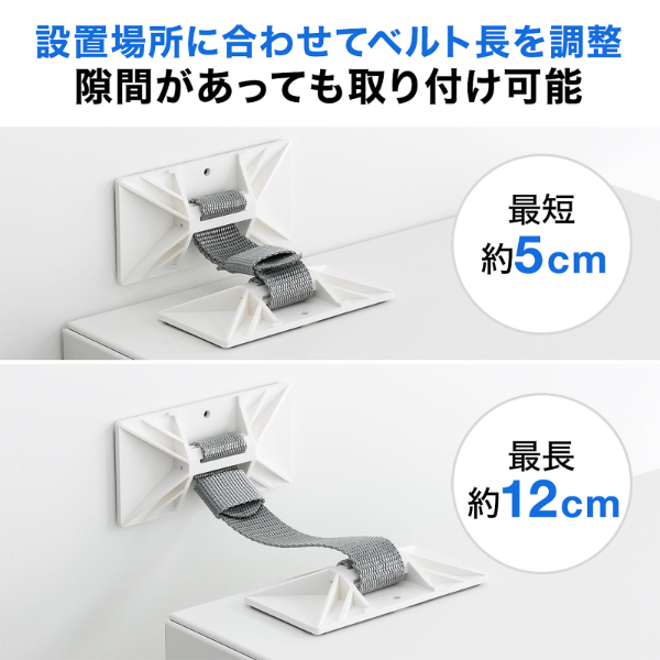 ・調整可能なベルトで壁と隙間があってもしっかり固定