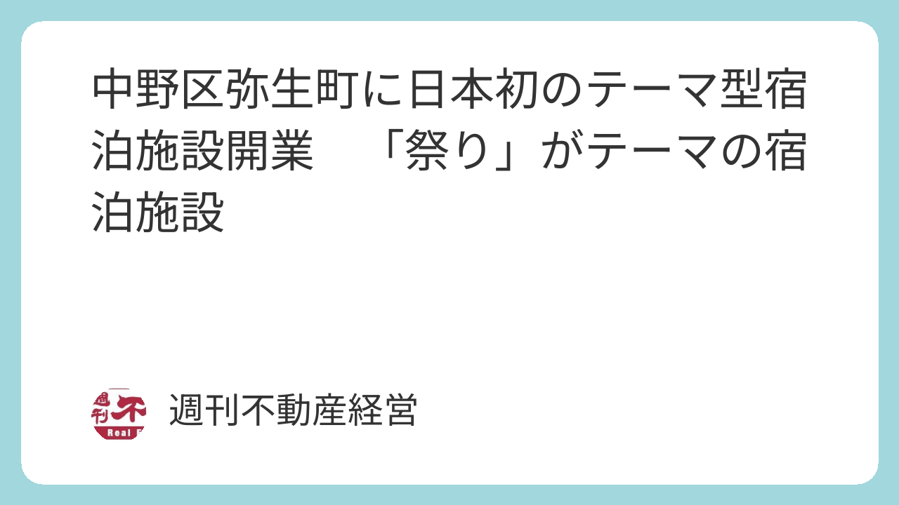 トピックスNowhere Group(東京都中野区)は東京都中野区弥生町に日本初のテーマ型宿泊施設「OMATSURI BASE Nakanoshimbashi」をグランドオープンする。