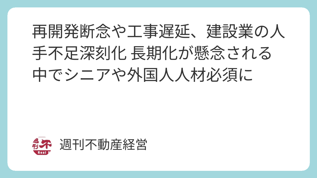 業界で相次いでいる工期遅延や再開発見直し。建設費の高騰が原因となっており、その背景には人手不足や高まる人件費が挙がる。働き方改革関連法により時間外労働の規制が設けられて発生した「2024年問題」への対処は今なお続く。